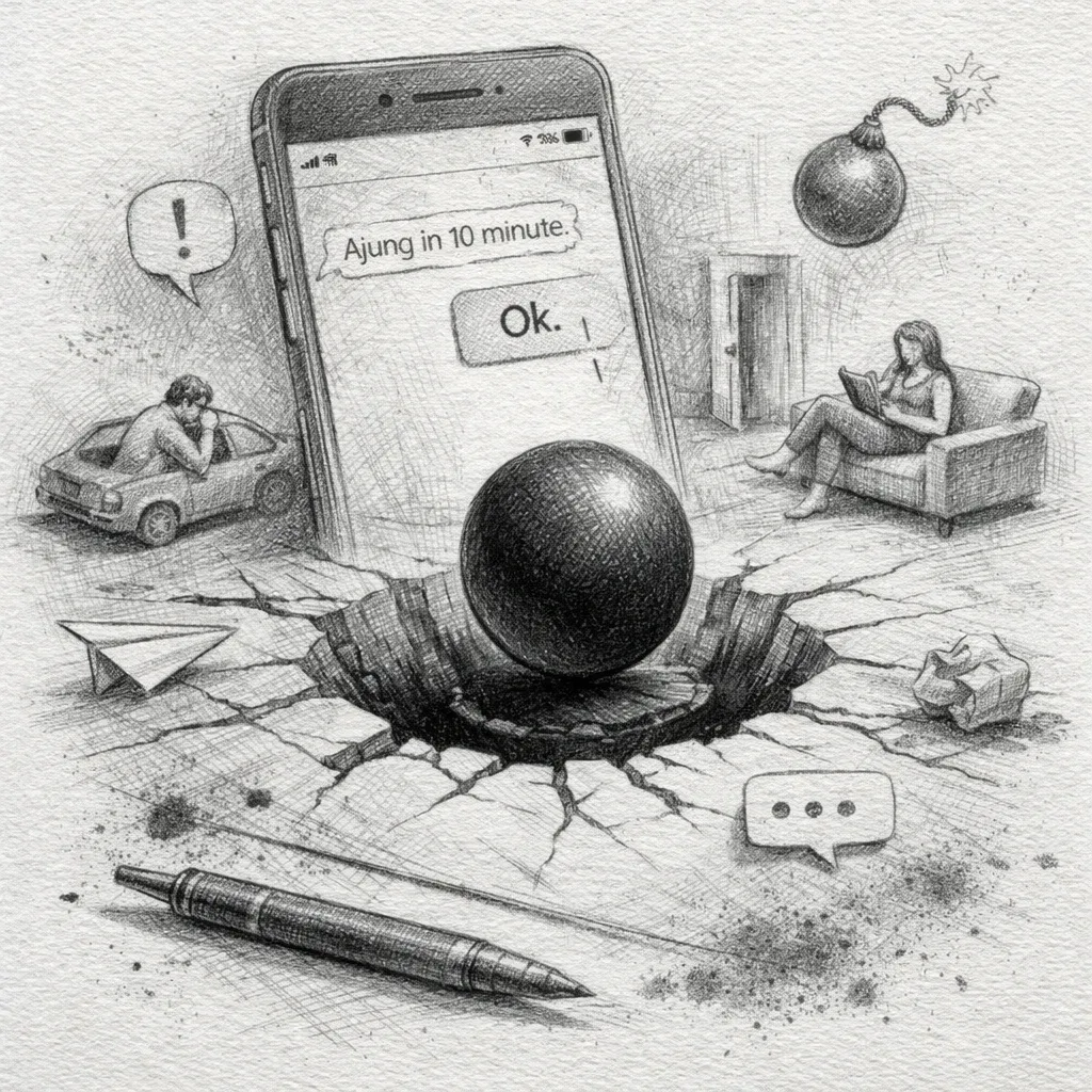Într-o seară de marți, pe la ora 22:00, Andrei, un arhitect de 32 de ani din București, a trimis un mesaj text partenerei de viață: „Ajung în 10 minute”. Răspunsul a venit instantaneu, tăios ca o lamă de bisturiu: „Ok.”