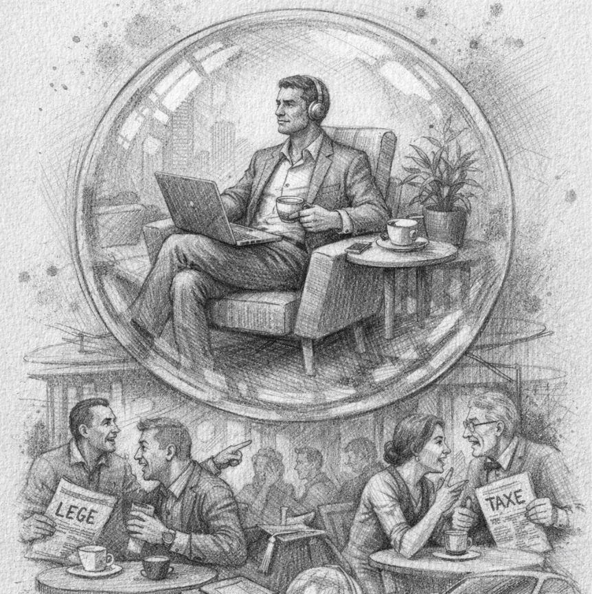 În timp ce onorabila republică se zbate în mlaștina dezbaterilor electorale și a noutăților fiscale, o nouă clasă de „cetățeni universali” a dezvoltat o trăsătură de mare rafinament: imunitatea desăvârșită la curentul politic. Aceasta nu este o lipsă de viziune, stimați cititori, ci un tabiet de lux, accesibil doar celor care au urcat suficient de sus pe muntele succesului de multinațională.