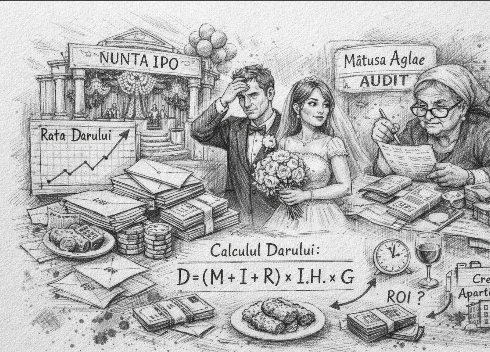 În timp ce analiștii de pe Wall Street se preocupă de volatilitatea piețelor de capital, românii au inventat un sistem financiar mult mai stabil și mai vechi decât capitalismul modern: Plicul. Nunta românească nu este doar o celebrare a iubirii; este o „Ofertă Publică Inițială” (IPO) în care tinerii miri își testează capitalul social și capacitatea de îndatorare a rudelor până la gradul al patrulea.