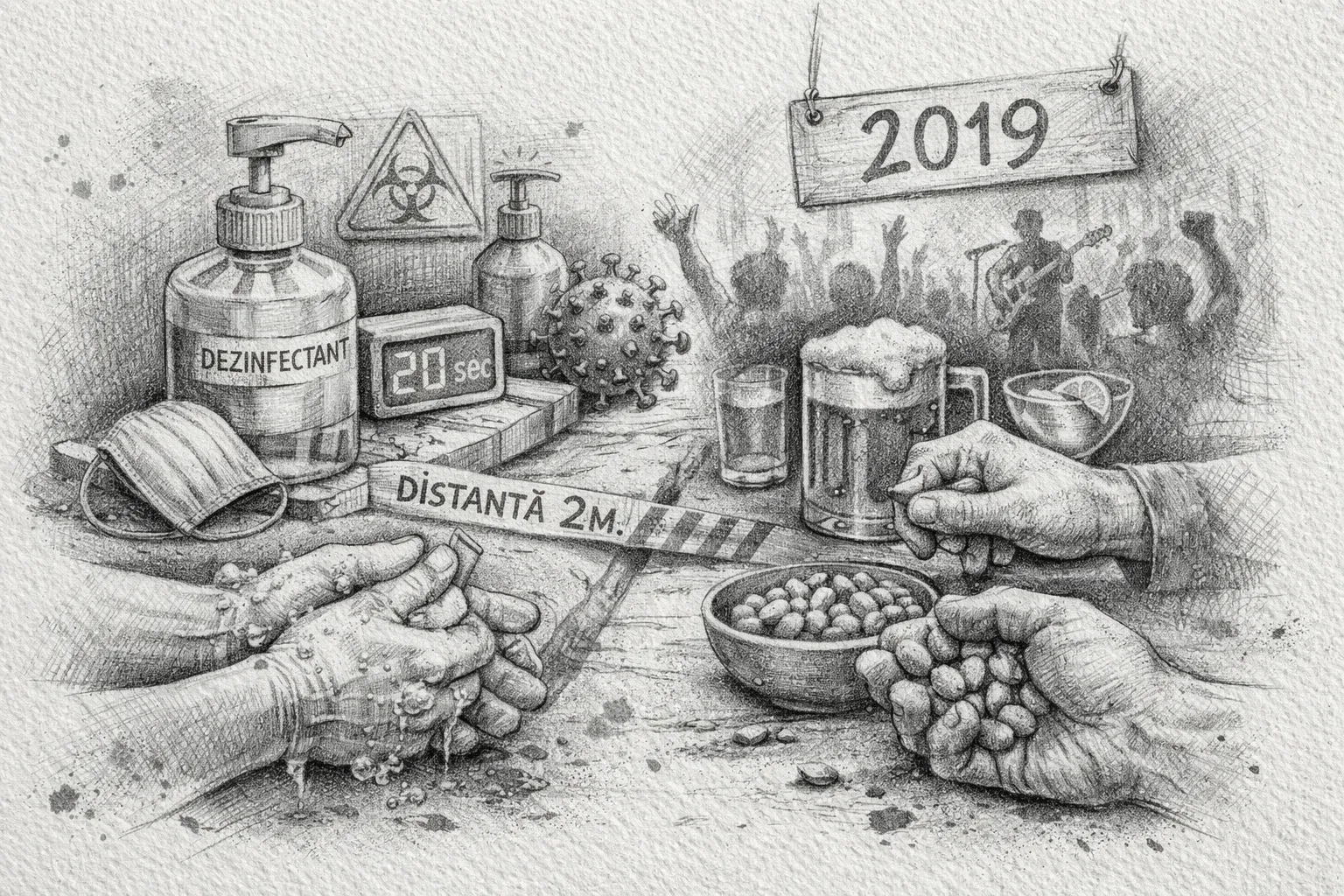 Privind înapoi, 2019 pare a fi Vârsta de Aur a atingerilor nesăbuite. Ne strângeam mâinile cu străini fără să calculăm mintal traseul fiecărui deget. Împărțeam boluri de alune la bar cu o seninătate care astăzi ar părea nebunie curată.