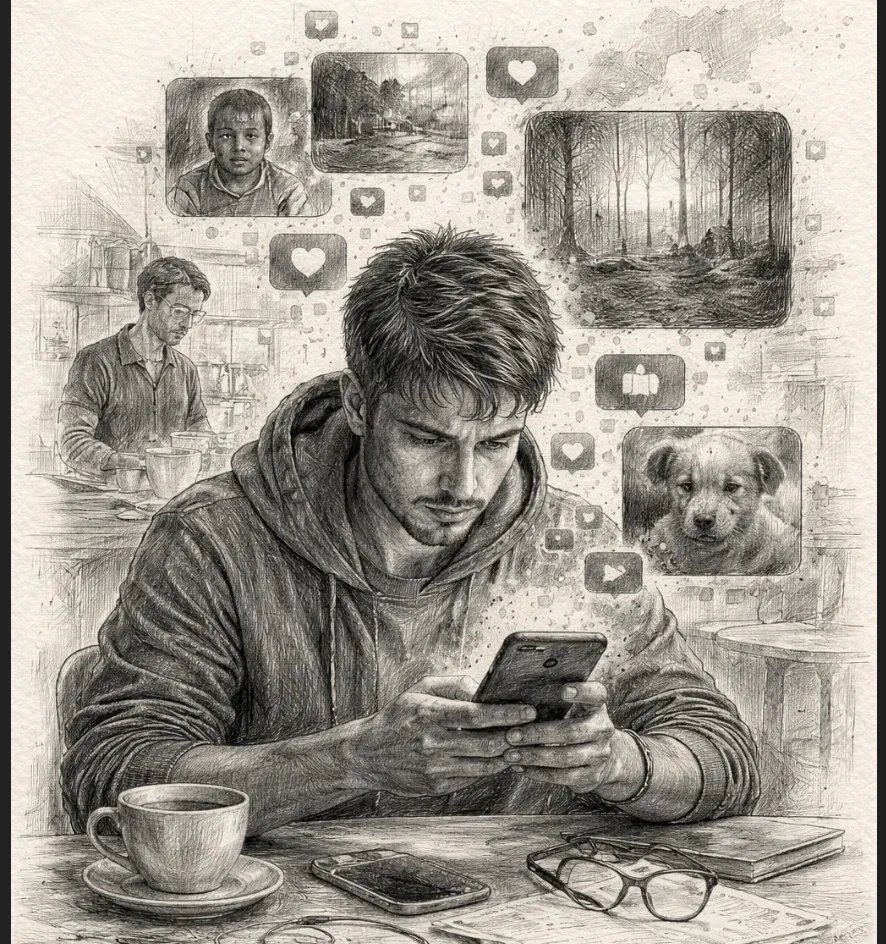 O analiză a „bulei empatiei” prin ochii lui Radu: un portret al bunătății digitale care salvează lumea pe ecran, dar ignoră realitatea de lângă noi.